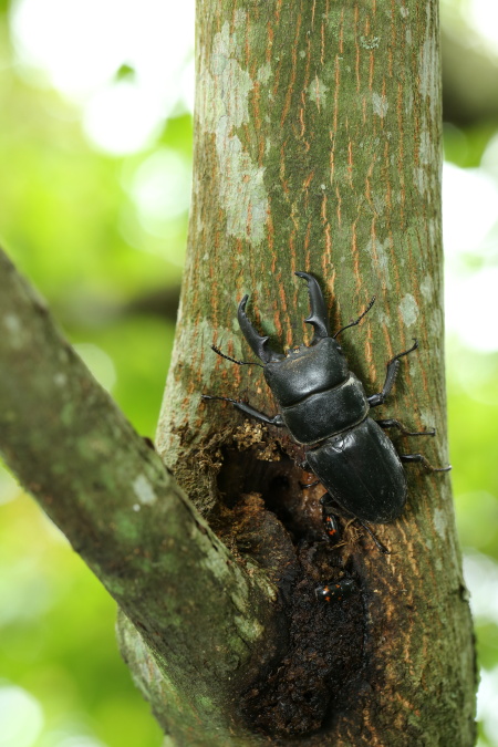 ちゃっかり樹液を吸い始める。オオスズメバチをライオンに例えるなら、