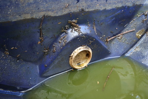 人工池の補修用シリコンが固まったので、水を元に戻した。作業中に姿を現した、ヤブヤンマのヤゴ達。
