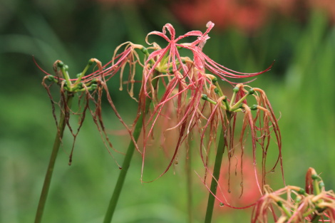 スズバチの場合、まずは水場に行き吸水を行う。次に土の採取場所へ移動し、水を吐き戻して泥玉粘土を拵える。これを大事そうに抱えて、営巣場所に正確に戻って来る。一旦この作業が始まると、このテンポは結構早く進む。うっかり目を離していると、肝心な工程を見落としてしまうので、気が抜けない。