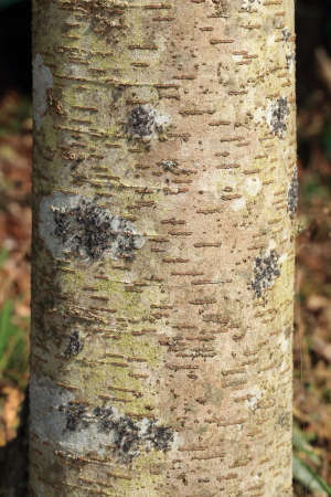 ウロチョロする黄色と緑色の幼虫の姿が今日は少ないが、樹皮の割れ目に数頭が固まって見えた。